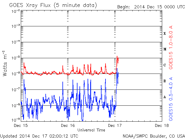 - 2014/12/15 12:31 M1.6の中規模フレアが発生するなど、2242黒点群でフレアが増えています。