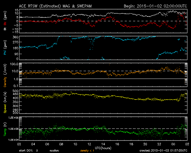 昨夜より、磁場強度(ACEの図の白線)が少し高まり、