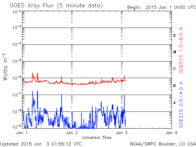 2015/ 1/ 2 12:10 太陽風は平均的な状態に戻っています。太陽も穏やかです。