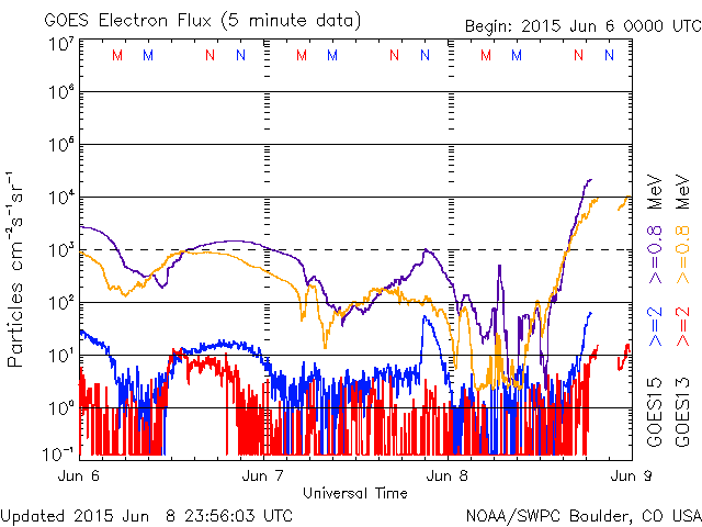 (c) NOAA/SWPC ![]() GOES衛星による、静止衛星軌道における高エネルギー電子の変化 (c) NOAA/SWPC ![]() | ||||||||||||||||||||||||||||||||||||||||||||||||||||||||||||||||||||||||||||||||||||||||||||||||||||||||||||||||||||||||||||||||||||||||||||||||||||||||||||||||||||||||||||||||||||||||||||||||||||||||||||||||||||||||||||||||||||||||