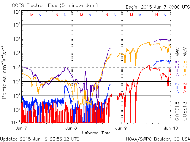 (c) NOAA/SWPC ![]() GOES衛星による、静止衛星軌道における高エネルギー電子の変化 (c) NOAA/SWPC ![]() | ||||||||||||||||||||||||||||||||||||||||||||||||||||||||||||||||||||||||||||||||||||||||||||||||||||||||||||||||||||||||||||||||||||||||||||||||||||||||||||||||||||||||||||||||||||||||||||||||||||||||||||||||||||||||||||||||||||||||||||