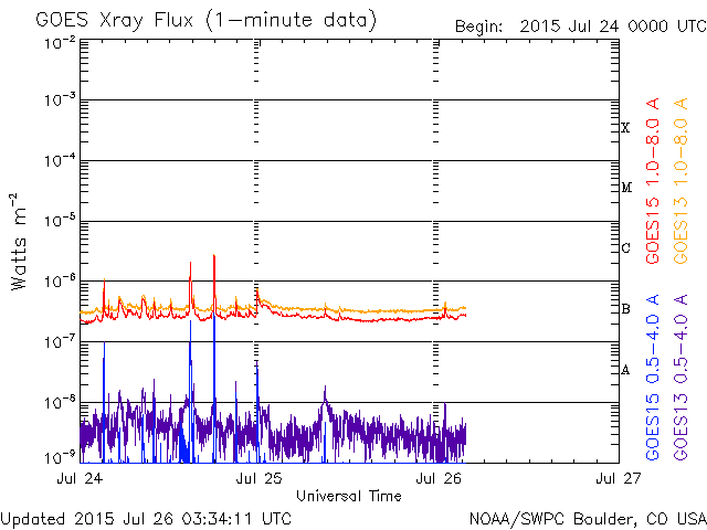 GOES衛星のX線グラフは、変化がなく、