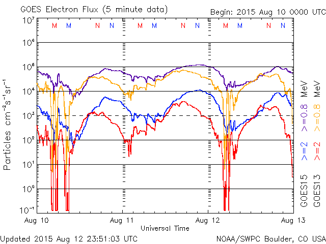 (c) NOAA/SWPC ![]() GOES衛星による、静止衛星軌道における高エネルギー電子の変化 (c) NOAA/SWPC ![]() | ||||||||||||||||||||||||||||||||||||||||||||||||||||||||||||||||||||||||||||||||||||||||||||||||||||||||||||||||||||||||||||||||||||||||||||||||||||||||||||||||||||||||||||||||||||||||||||||||||||||||||||||||||||||||||||||||