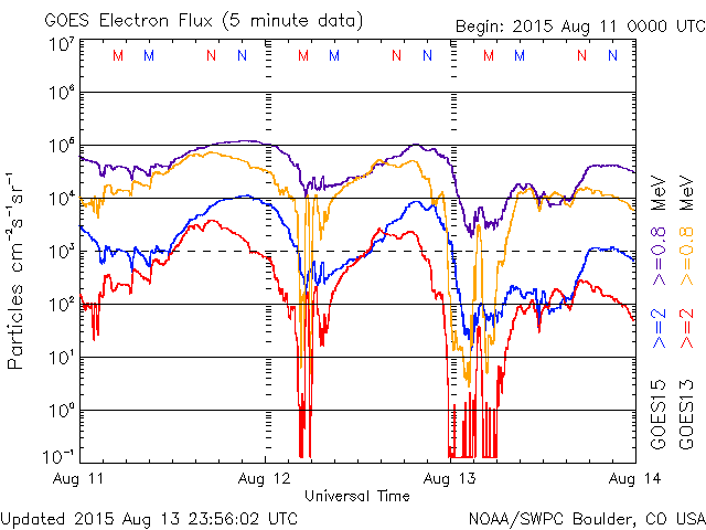 (c) NOAA/SWPC ![]() GOES衛星による、静止衛星軌道における高エネルギー電子の変化 (c) NOAA/SWPC ![]() | ||||||||||||||||||||||||||||||||||||||||||||||||||||||||||||||||||||||||||||||||||||||||||||||||||||||||||||||||||||||||||||||||||||||||||||||||||||||||||||||||||||||||||||||||||||||||||||||||||||||||||||||||||||||||||||||