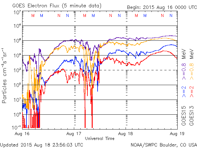 (c) NOAA/SWPC ![]() GOES衛星による、静止衛星軌道における高エネルギー電子の変化 (c) NOAA/SWPC ![]() | ||||||||||||||||||||||||||||||||||||||||||||||||||||||||||||||||||||||||||||||||||||||||||||||||||||||||||||||||||||||||||||||||||||||||||||||||||||||||||||||||||||||||||||||||||||||||||||||||||||||||||||||||||||||||||