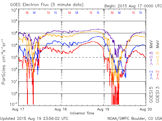 (c) NOAA/SWPC ![]() GOES衛星による、静止衛星軌道における高エネルギー電子の変化 (c) NOAA/SWPC ![]() | ||||||||||||||||||||||||||||||||||||||||||||||||||||||||||||||||||||||||||||||||||||||||||||||||||||||||||||||||||||||||||||||||||||||||||||||||||||||||||||||||||||||||||||||||||||||||||||||||||||||||||||||||||||||