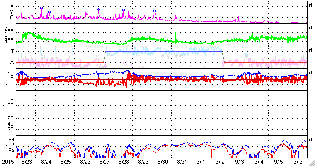 現在は5nTと平均的な値に戻りかけています。