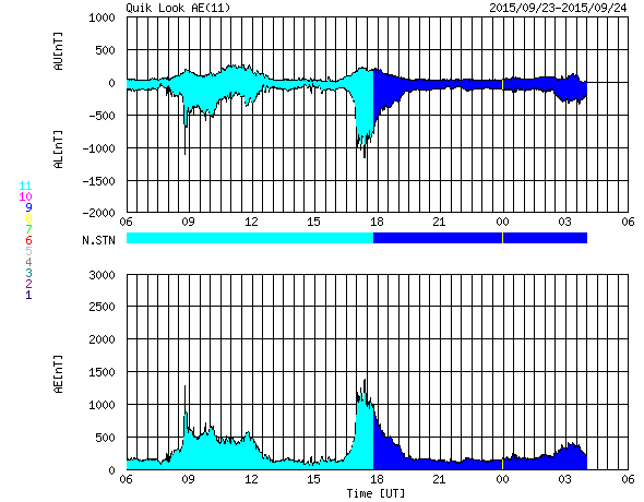 下段のAEグラフの値が高くなると、オーロラ活動が活発化しています。