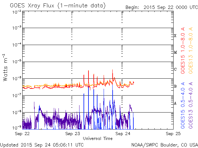 GOES衛星のX線グラフは、少しにぎやかになっています。