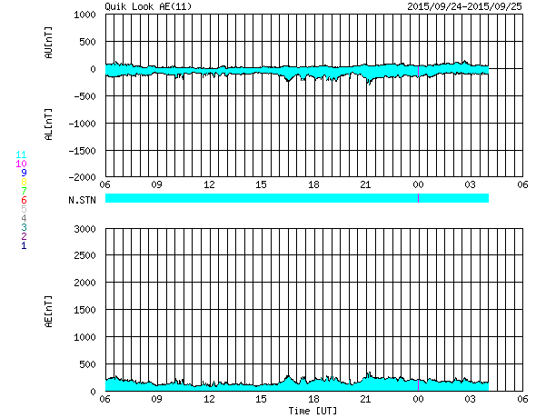 下段のAEグラフの値が高くなると、オーロラ活動が活発化しています。