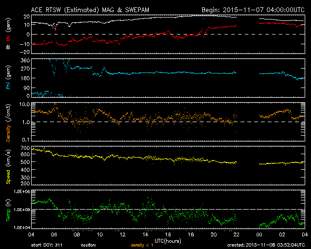 2015/11/ 6 11:50 高速の太陽風は続いています。明日くらいに太陽風の乱れが到来しそうです。