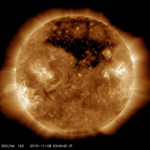 北半球の中高緯度にコロナホールが大きく広がっています。