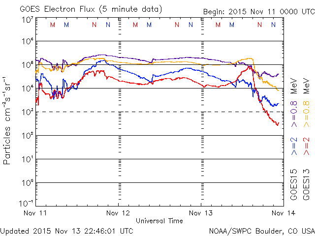 (c) NOAA/SWPC ![]() GOES衛星による、静止衛星軌道における高エネルギー電子の変化 (c) NOAA/SWPC ![]() | ||||||||||||||||||||||||||||||||||||||||||||||||||||||||||||||||||||||||||||||||||||||||||||||||||||||||||||||||||||||||||||||||||||||||||||||||||||||||||||||||||||||||||||||||||||||||||||||||||||||||||||||||||||||