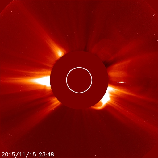 太陽の西(右)に向かって、CMEが飛び出しています。