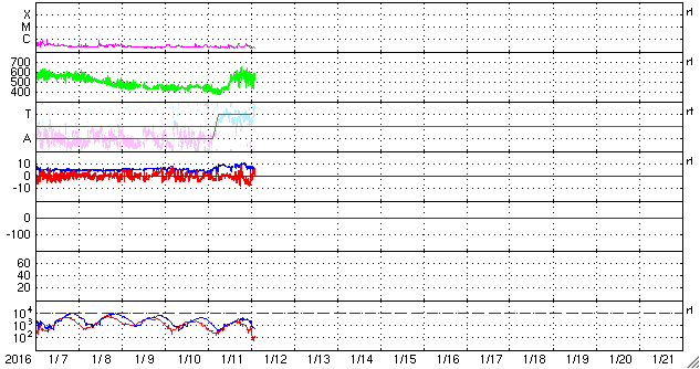 2016/ 1/ 7 12:28 高速の太陽風が続き、磁気圏の活動も高まっています。