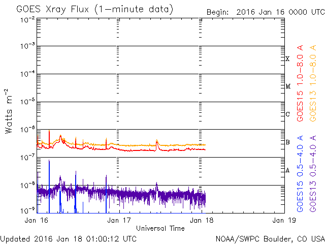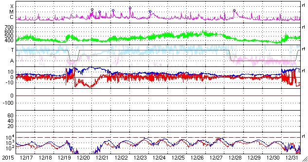 - 2016/ 1/15 12:01 太陽風は平均的な速さに戻りました。1週間ぶりにCフレアが発生しました。