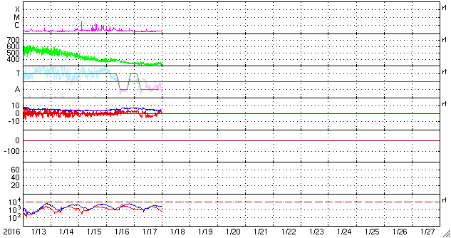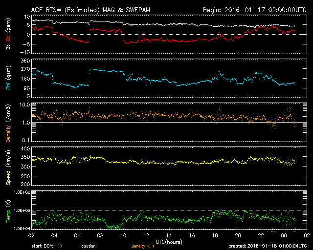 - 2016/ 1/17 10:28 太陽風はより低速の状態になり、磁気圏も穏やかです。