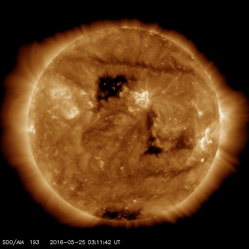 - 2016/ 5/22 13:09 高速の太陽風が到来し、速度は600km/秒に達しています。
