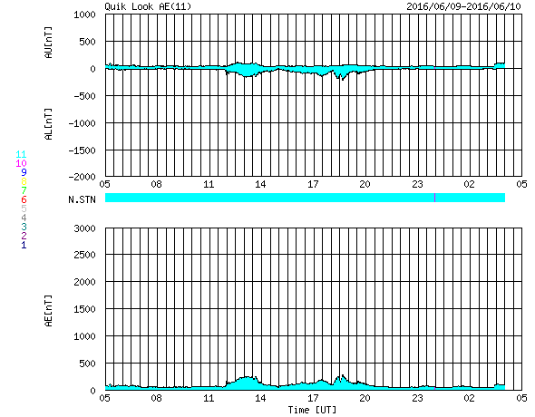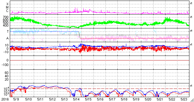 (c) SOHO (ESA & NASA)、 (動画加工 : 宇宙天気ニュース) ![]() SDO衛星のAIA193カメラによる太陽コロナの様子 (c) SDO (NASA) ![]() SDO衛星による太陽の可視光写真。マウスの矢印を写真に重ねると、黒点番号付きの写真に切り替わります。 (c) SDO (NASA) ![]() GOES衛星の太陽X線データ (c) NOAA/SWPC ![]() ACEが観測した太陽風の磁場(1番上の枠、白線は全体の強度、赤線は南北成分) および、太陽風の密度(3番目の橙線)、速度(4番目の黄線) (c) NOAA/SWPC ![]() リアルタイムAE指数 下段のAEグラフの値が高くなると、オーロラ活動が活発化しています。 (c) 京都大学, NICT ![]() 27日の太陽周期に合わせたデータプロット 太陽が同じ面を地球に向けていた27日前の変化から、今後を予想することができます。 (c) 作図:宇宙天気ニュース