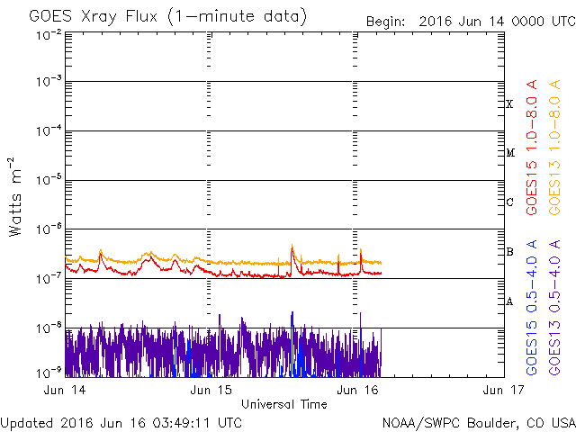 2016/ 6/12 13:10 C6.5の小規模フレアが発生しました。太陽風はやや高速です。
