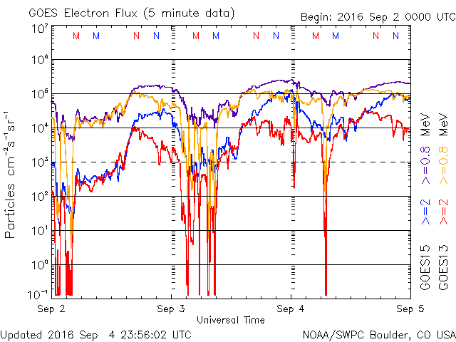 (c) NOAA/SWPC ![]() GOES衛星による、静止衛星軌道における高エネルギー電子の変化 (c) NOAA/SWPC ![]() | ||||||||||||||||||||||||||||||||||||||||||||||||||||||||||||||||||||||||||||||||||||||||||||||||||||||||||||||||||||||||||||||||||||||||||||||||||||||||||||||||||||||||||||||||||||||||||||||||||||||||||||||||||||||||