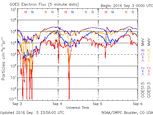 (c) NOAA/SWPC ![]() GOES衛星による、静止衛星軌道における高エネルギー電子の変化 (c) NOAA/SWPC ![]() | ||||||||||||||||||||||||||||||||||||||||||||||||||||||||||||||||||||||||||||||||||||||||||||||||||||||||||||||||||||||||||||||||||||||||||||||||||||||||||||||||||||||||||||||||||||||||||||||||||||||||||||||||