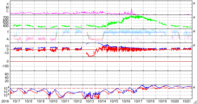 磁場強度も、3〜5nTとやや弱い状態です。