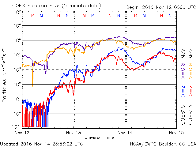 (c) NOAA/SWPC ![]() GOES衛星による、静止衛星軌道における高エネルギー電子の変化 (c) NOAA/SWPC ![]() | ||||||||||||||||||||||||||||||||||||||||||||||||||||||||||||||||||||||||||||||||||||||||||||||||||||||||||||||||||||||||||||||||||||||||||||||||||||||||||||||||||||||||||||||||||||||||||||||||||||||||||||||||||||||