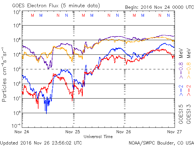 (c) NOAA/SWPC ![]() GOES衛星による、静止衛星軌道における高エネルギー電子の変化 (c) NOAA/SWPC ![]() | ||||||||||||||||||||||||||||||||||||||||||||||||||||||||||||||||||||||||||||||||||||||||||||||||||||||||||||||||||||||||||||||||||||||||||||||||||||||||||||||||||||||||||||||||||||||||||||||||||||||||||||||||||||