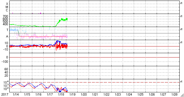 2017/ 1/17 10:11 太陽風の速度は300km/秒近くまで下がり、磁気圏も穏やかです。