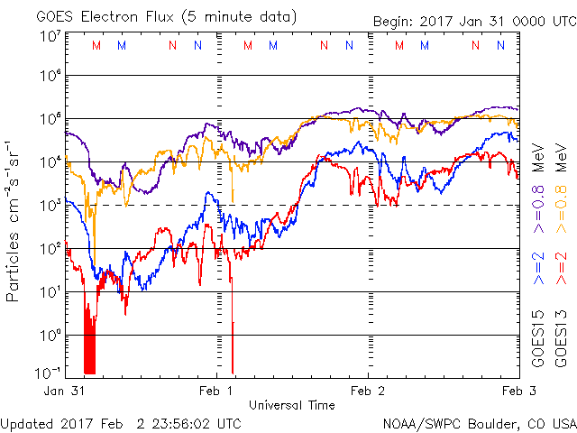 (c) NOAA/SWPC ![]() GOES衛星による、静止衛星軌道における高エネルギー電子の変化 (c) NOAA/SWPC ![]() | ||||||||||||||||||||||||||||||||||||||||||||||||||||||||||||||||||||||||||||||||||||||||||||||||||||||||||||||||||||||||||||||||||||||||||||||||||||||||||||||||||||||||||||||||||||||||||||||||||||||||||||||||||||||||||