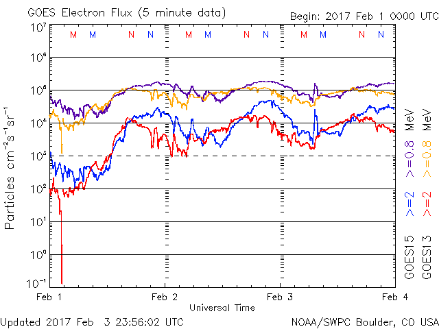 (c) NOAA/SWPC ![]() GOES衛星による、静止衛星軌道における高エネルギー電子の変化 (c) NOAA/SWPC ![]() | ||||||||||||||||||||||||||||||||||||||||||||||||||||||||||||||||||||||||||||||||||||||||||||||||||||||||||||||||||||||||||||||||||||||||||||||||||||||||||||||||||||||||||||||||||||||||||||||||||||||||||||||||||||||||||