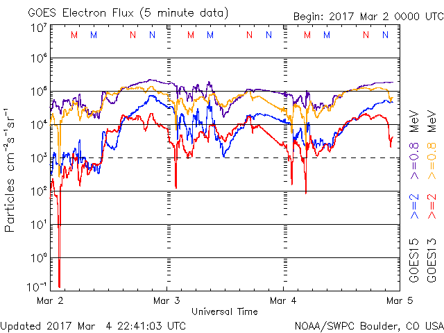 (c) NOAA/SWPC ![]() GOES衛星による、静止衛星軌道における高エネルギー電子の変化 (c) NOAA/SWPC ![]() | ||||||||||||||||||||||||||||||||||||||||||||||||||||||||||||||||||||||||||||||||||||||||||||||||||||||||||||||||||||||||||||||||||||||||||||||||||||||||||||||||||||||||||||||||||||||||||||||||||||||||||||||||||||||||||
