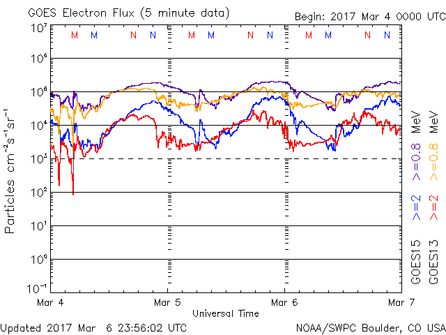 (c) NOAA/SWPC ![]() GOES衛星による、静止衛星軌道における高エネルギー電子の変化 (c) NOAA/SWPC ![]() | ||||||||||||||||||||||||||||||||||||||||||||||||||||||||||||||||||||||||||||||||||||||||||||||||||||||||||||||||||||||||||||||||||||||||||||||||||||||||||||||||||||||||||||||||||||||||||||||||||||||||||||||||||||