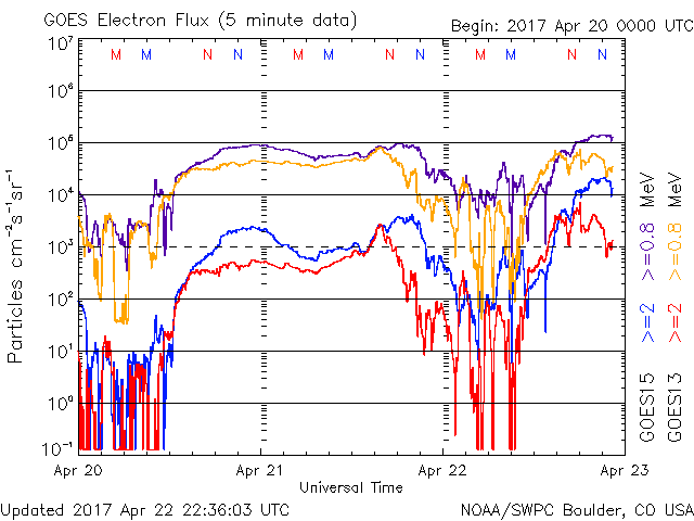 (c) NOAA/SWPC ![]() GOES衛星による、静止衛星軌道における高エネルギー電子の変化 (c) NOAA/SWPC ![]() | ||||||||||||||||||||||||||||||||||||||||||||||||||||||||||||||||||||||||||||||||||||||||||||||||||||||||||||||||||||||||||||||||||||||||||||||||||||||||||||||||||||||||||||||||||||||||||||||||||||||||||||||||||||||||||||