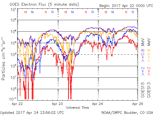 (c) NOAA/SWPC ![]() GOES衛星による、静止衛星軌道における高エネルギー電子の変化 (c) NOAA/SWPC ![]() | ||||||||||||||||||||||||||||||||||||||||||||||||||||||||||||||||||||||||||||||||||||||||||||||||||||||||||||||||||||||||||||||||||||||||||||||||||||||||||||||||||||||||||||||||||||||||||||||||||||||||||||||||||||||||||