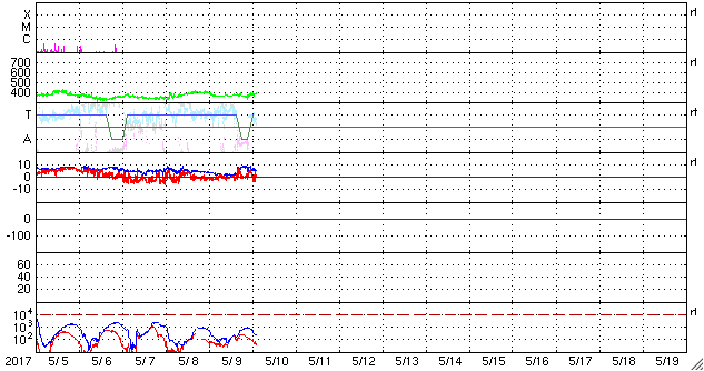 - 2017/ 5/ 7 10:03 太陽風は低速で、磁気圏はとても穏やかです。