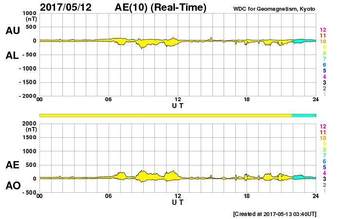 世界時5月12日のAE指数(速報値)。