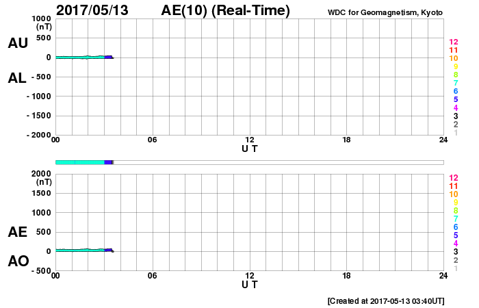 世界時5月13日のAE指数(速報値)。