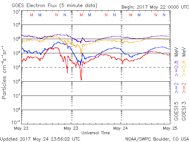 (c) NOAA/SWPC ![]() GOES衛星による、静止衛星軌道における高エネルギー電子の変化 (c) NOAA/SWPC ![]() | ||||||||||||||||||||||||||||||||||||||||||||||||||||||||||||||||||||||||||||||||||||||||||||||||||||||||||||||||||||||||||||||||||||||||||||||||||||||||||||||||||||||||||||||||||||||||||||||||||||||||||||||||||