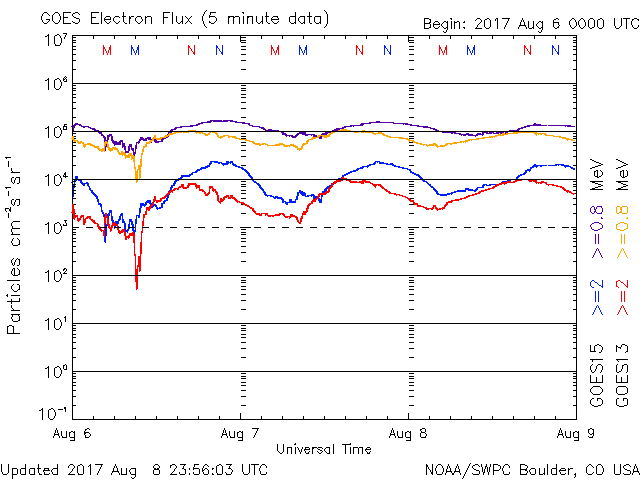 (c) NOAA/SWPC ![]() GOES衛星による、静止衛星軌道における高エネルギー電子の変化 (c) NOAA/SWPC ![]() | ||||||||||||||||||||||||||||||||||||||||||||||||||||||||||||||||||||||||||||||||||||||||||||||||||||||||||||||||||||||||||||||||||||||||||||||||||||||||||||||||||||||||||||||||||||||||||||||||||||||||||||||||||||