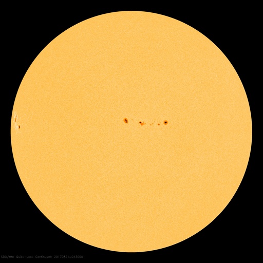 SDO衛星による太陽の可視光写真。マウスの矢印を写真に重ねると、黒点番号付きの写真に切り替わります。