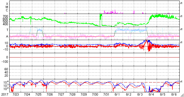 1500nTに達する激しい変化も記録されています。