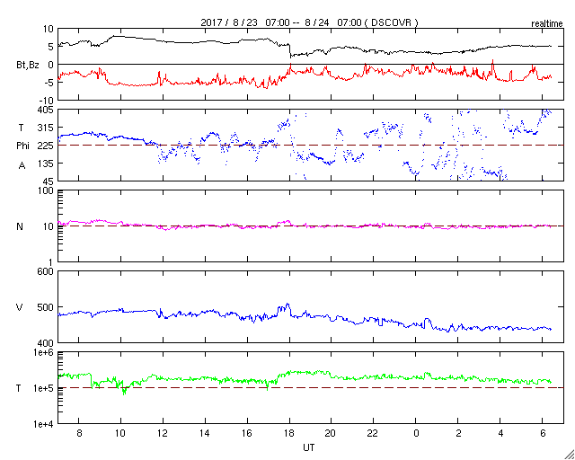 - 2017/ 8/22 15:51 太陽風の速度が再び高まっています。