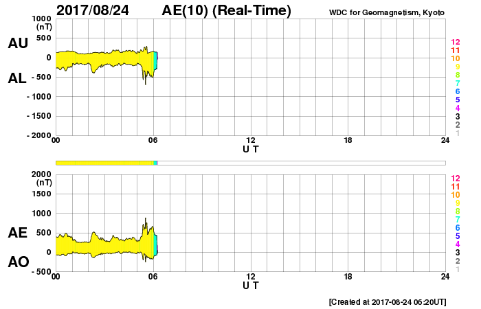 世界時8月24日のAE指数(速報値)。