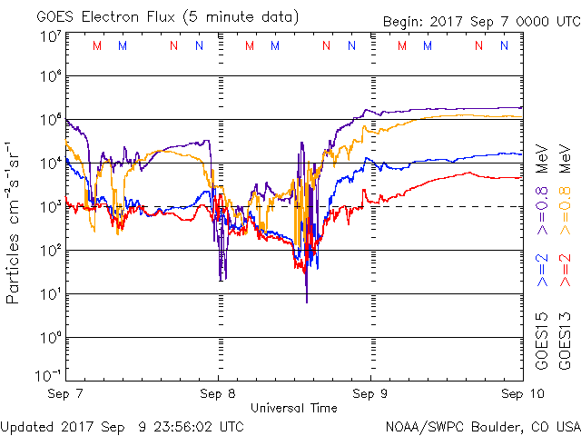 (c) NOAA/SWPC ![]() GOES衛星による、静止衛星軌道における高エネルギー電子の変化 (c) NOAA/SWPC ![]() | ||||||||||||||||||||||||||||||||||||||||||||||||||||||||||||||||||||||||||||||||||||||||||||||||||||||||||||||||||||||||||||||||||||||||||||||||||||||||||||||||||||||||||||||||||||||||||||||||||||||||||||||||||||||||||||||||||||||||||||||||||||||||||||||||||||||||||||||||||||||||||||||||||||||||||||||||