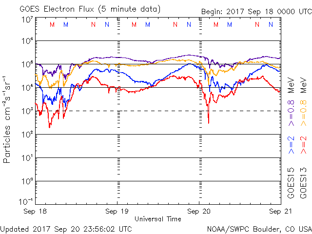 (c) NOAA/SWPC ![]() GOES衛星による、静止衛星軌道における高エネルギー電子の変化 (c) NOAA/SWPC ![]() | ||||||||||||||||||||||||||||||||||||||||||||||||||||||||||||||||||||||||||||||||||||||||||||||||||||||||||||||||||||||||||||||||||||||||||||||||||||||||||||||||||||||||||||||||||||||||||||||||||||||||||||||||||
