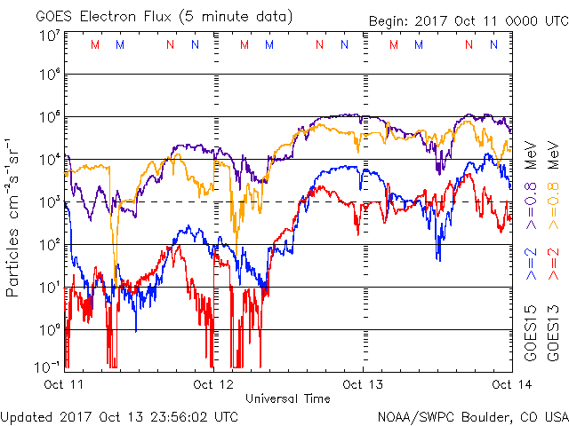 (c) NOAA/SWPC ![]() GOES衛星による、静止衛星軌道における高エネルギー電子の変化 (c) NOAA/SWPC ![]() | ||||||||||||||||||||||||||||||||||||||||||||||||||||||||||||||||||||||||||||||||||||||||||||||||||||||||||||||||||||||||||||||||||||||||||||||||||||||||||||||||||||||||||||||||||||||||||||||||||||||||||||||||