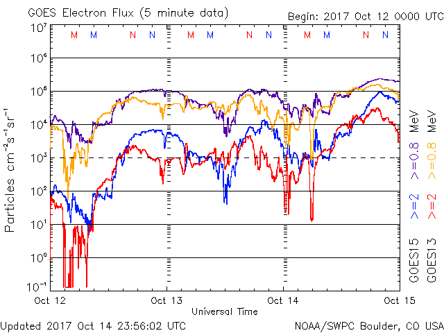 (c) NOAA/SWPC ![]() GOES衛星による、静止衛星軌道における高エネルギー電子の変化 (c) NOAA/SWPC ![]() | ||||||||||||||||||||||||||||||||||||||||||||||||||||||||||||||||||||||||||||||||||||||||||||||||||||||||||||||||||||||||||||||||||||||||||||||||||||||||||||||||||||||||||||||||||||||||||||||||||||||||||||||||