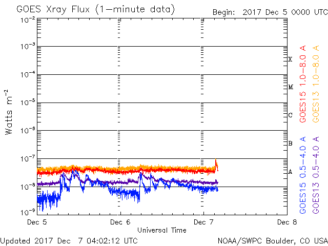 2017/12/ 3 12:51 太陽風は平均的な状態です。11月の黒点相対数は、5.7 に下がっています。